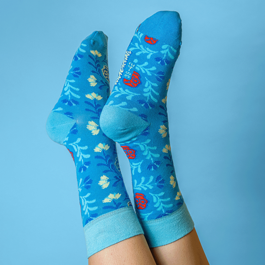 Ozeanblauen Bunte Socken mit freundlichen Totenköpfen.